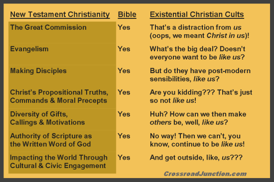 They then elevate their very postmodern Jesus over His own written word of scripture, under the mantra that “Christ is All” – such that Christ (or at least their perception of Him) trumps scripture.