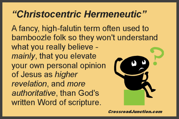 My opinion is that only those who don’t like what scripture says seek to fracture their perception of Jesus from His authoritative written Word. (Of course, who can question my opinion – there is no higher standard!) Seriously, though, I would rather shatter my sensibilities against the rock of God’s Word than subvert Christ to your subjective, postmodern, existential angst.