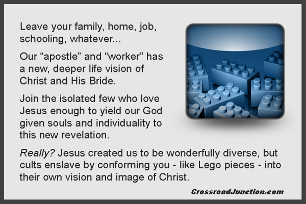 Conforming to someone’s idea of Christ, His grand vision, the deeper life or God’s epic purpose can be just as legalistic and limiting as any institutional church structure. In fact, it can become cultish. Break free and become the wonderful, multifaceted, multi-gifted and diverse Body of Christ!